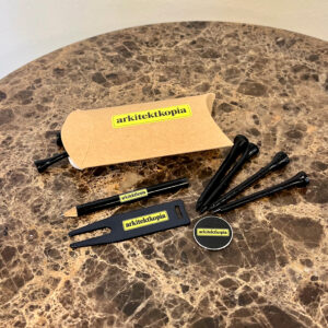 Innehåll greenlagare, markörmynt och flera golf peg.