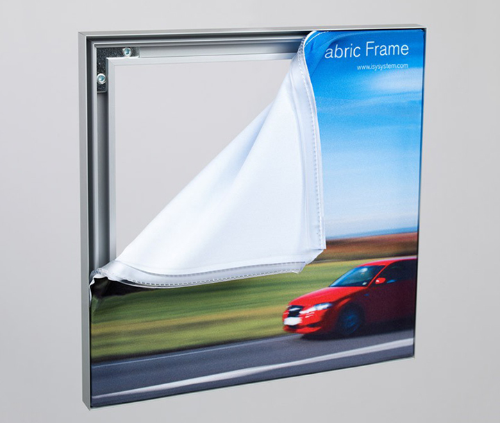 Fabric Frame är ett ramsystem för textilbanners där endast bilden syns framifrån. Det skapar en ren och elegant yta runt bilden. Ramen kan skräddarsys efter dina önskemål. Den här modellen går även att få med invändig belysning i form av LED-slingor som monteras i ramen. När tyget sedan späns över ramen får du ett behagligt ljus på ditt budskap. Modellerna kommer med standardmått men dessa går att justera efter önskemål.